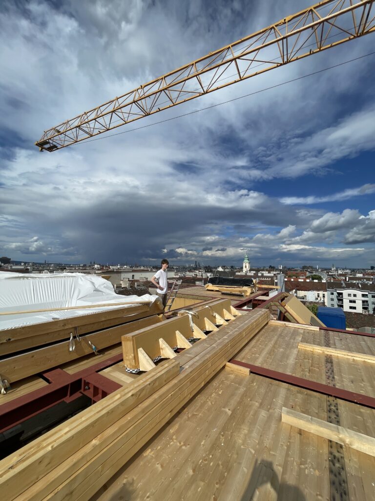 Es geht hoch hinaus mit dem Dachbodenausbau eines bestehenden Wiener Hofhauses. Das geplante Penthouse wird in der urbanen, einst gewerblichen Zone des 7. Bezirks entstehen.